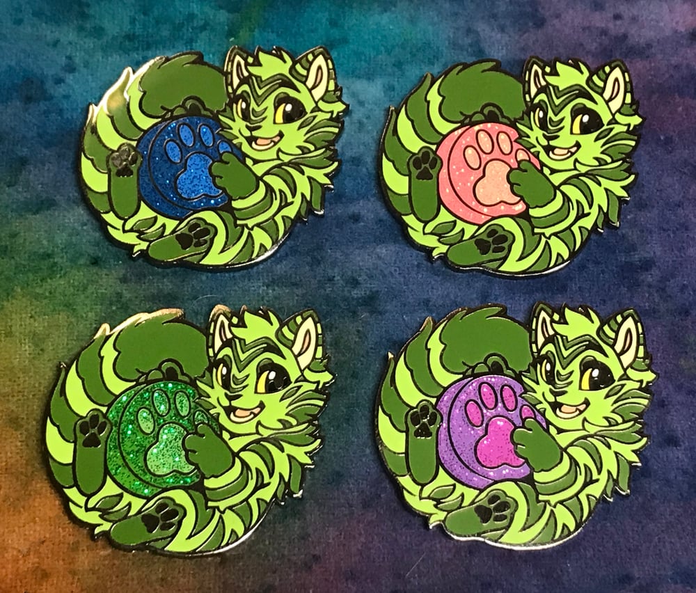 It’s our mascot, Richard Lime! We partnered with Fursona Pins and the super talented Kiwibon to create four variants of this collectible character pin, featuring the grinning green cat from the label of our original scent, Rich Lime.